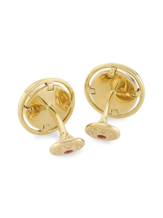 Yellow and white gold cufflinks with apollo, greek antiquated coin. american closing whit logo and two rubies.