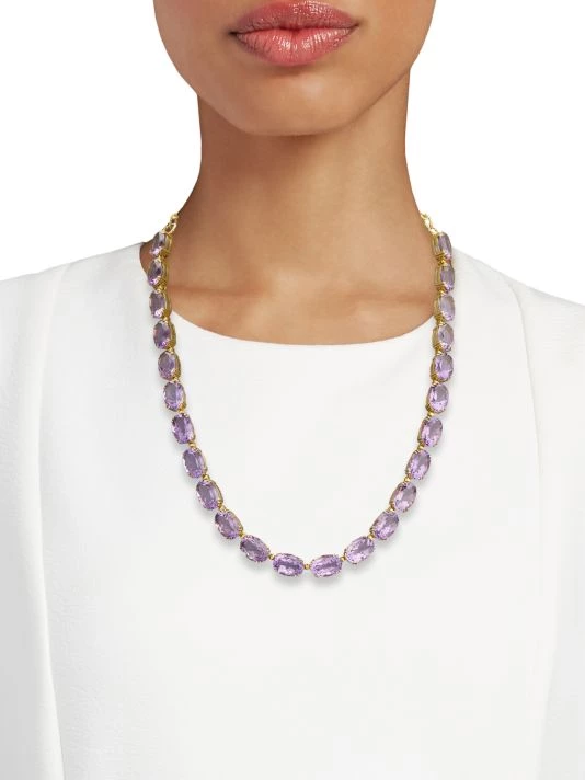 - 24 oval-shaped amethyst quartzes 100 cts; south sea baroque pearl, 10-11 mm. Tcw