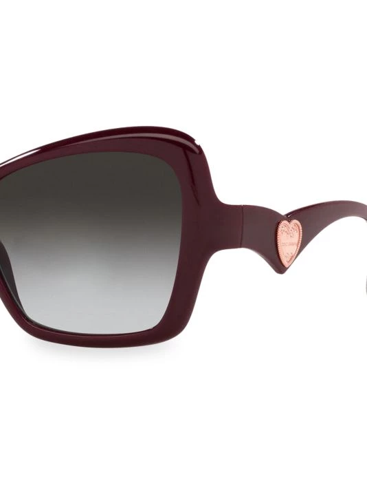 Structural cat eye frames accented with goldtone hearts on the temple evoke chic elegance.