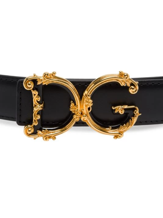 Enchanting goldtone floral scrollwork design makes this leather belt a dazzling piece.