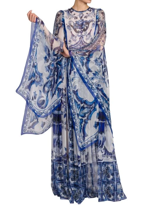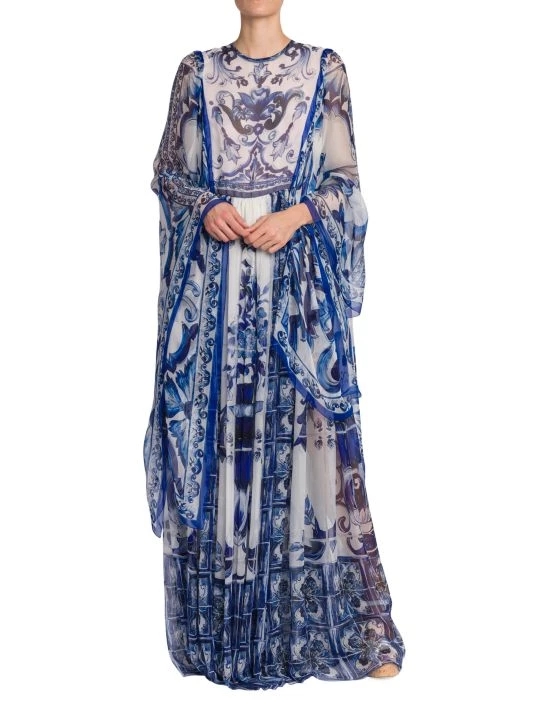 From the Blu Mediterraneo Collection. Crafted of silk chiffon, DOLCE&GABBANA’s kimono-sleeve maxi dress is defined by large painterly prints and draped sides.