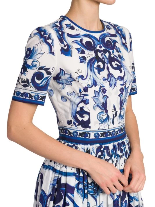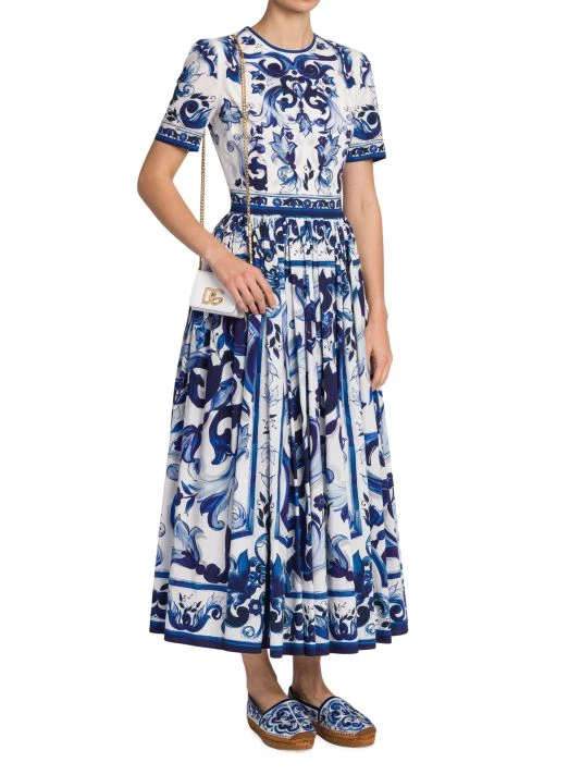 From the Blu Mediterraneo Collection. Cut in a fit-and-flare silhouette, DOLCE&GABBANA’s short-sleeve midi-dress is defined by large painterly prints.