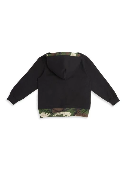 Camouflage print trims this pieced utilitarian hoodie, crafted with a boxy fit.