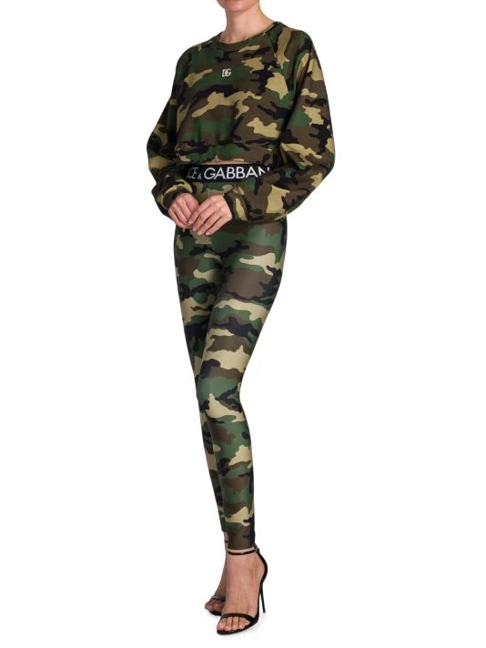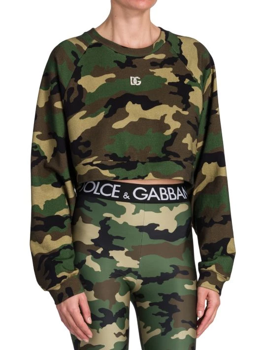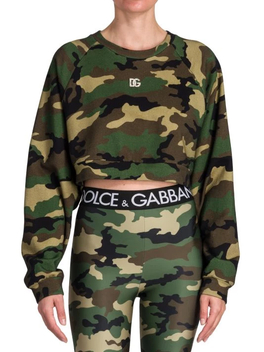 Crafted of soft Italian cotton, this camo-print cropped sweatshirt is adorned with crystal-accented logo applique.