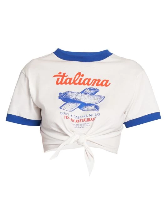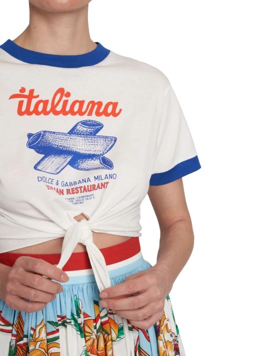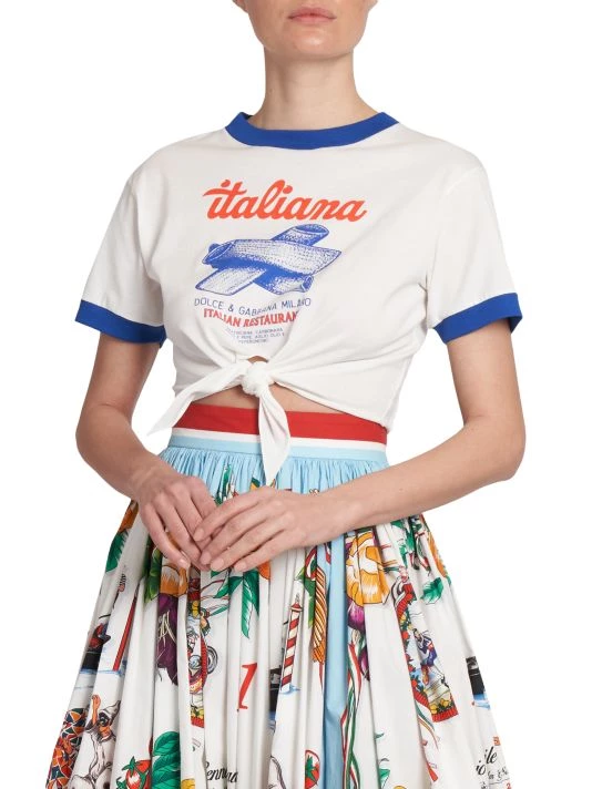 From the Capri Collection. Cut in a cropped silhouette, DOLCE&GABBANA’s crewneck T-shirt boasts a large central graphic and a knotted hem.