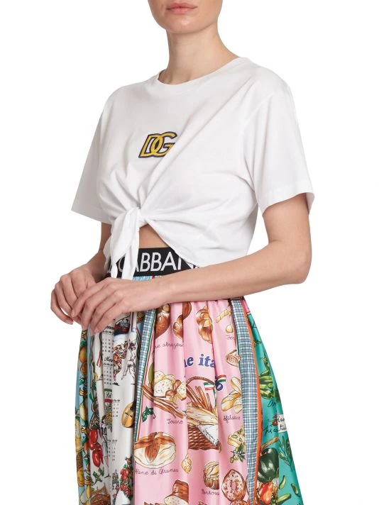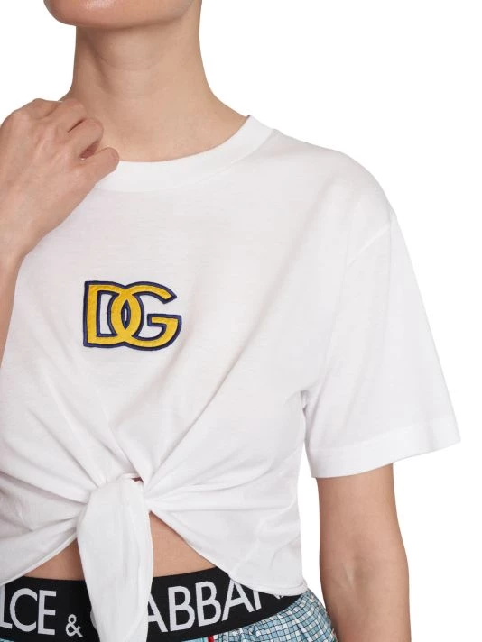 From the Capri Collection. Cut in a cropped silhouette, DOLCE&GABBANA’s crewneck T-shirt is defined by an embroidered logo at the chest and a knotted hem.
