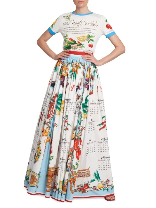 From the Capri Collection. Crafted of poplin, DOLCE&GABBANA’s pleated maxi skirt is defined by mixed painterly and calendar prints.