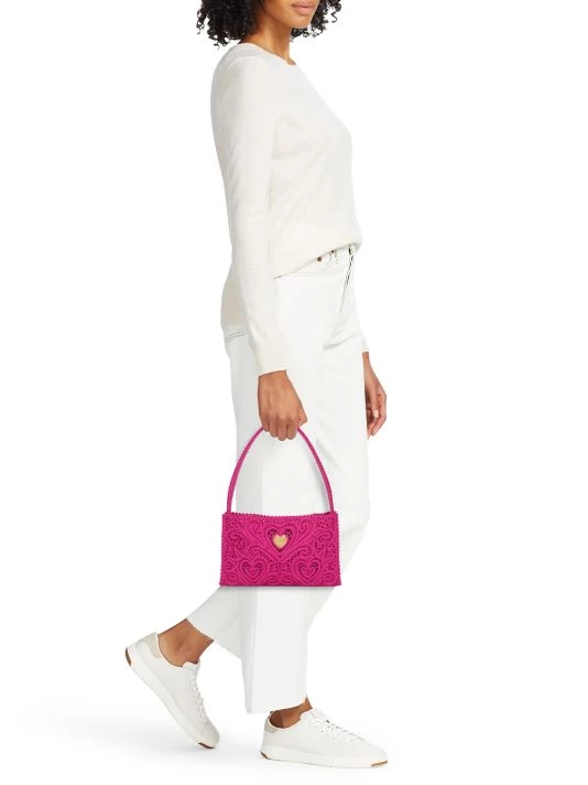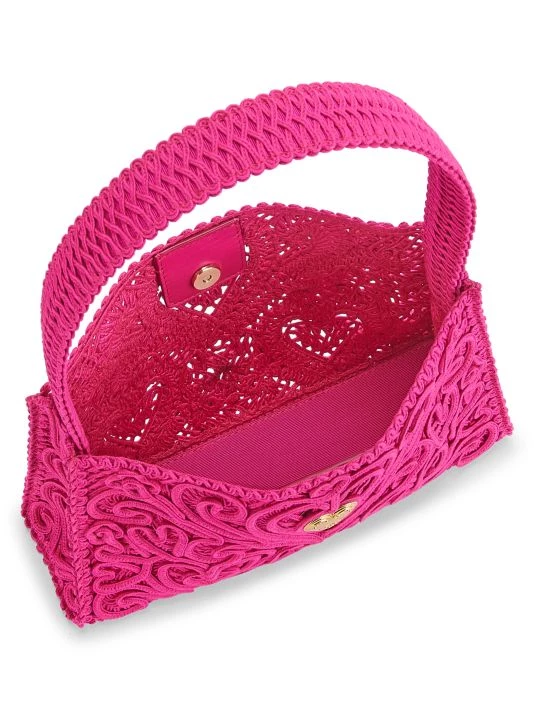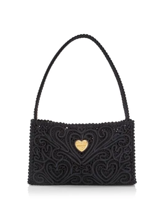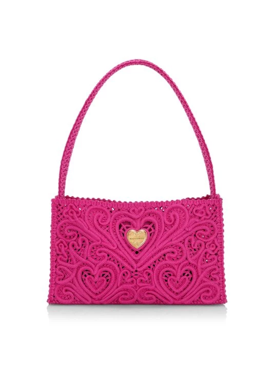 The Cordonetto bag from DOLCE&GABBANA is crafted of lace fabric with a metal heart logo plaque accent.