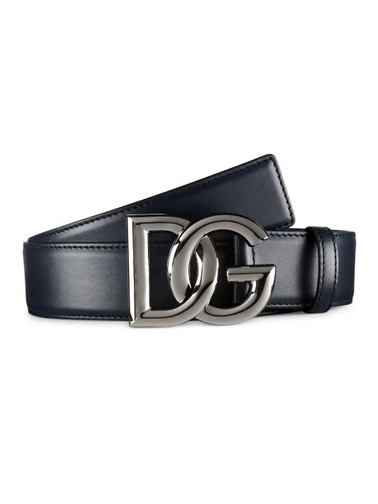 ONLY AT SAKS. This leather belt features a branded metal buckle to close.