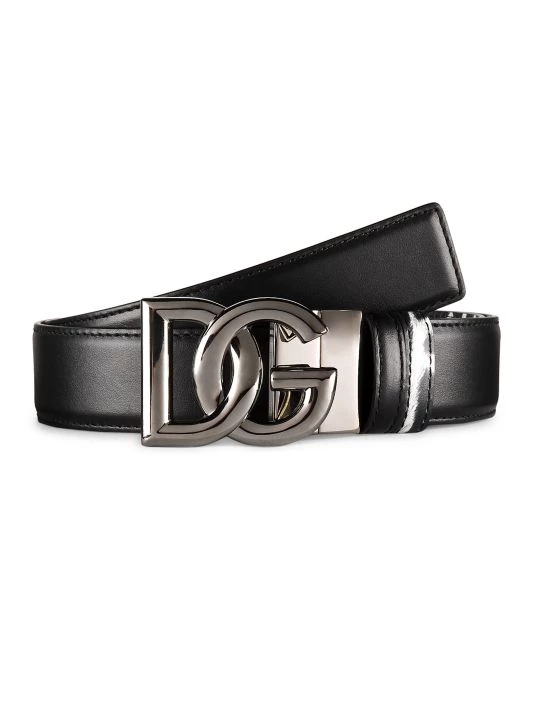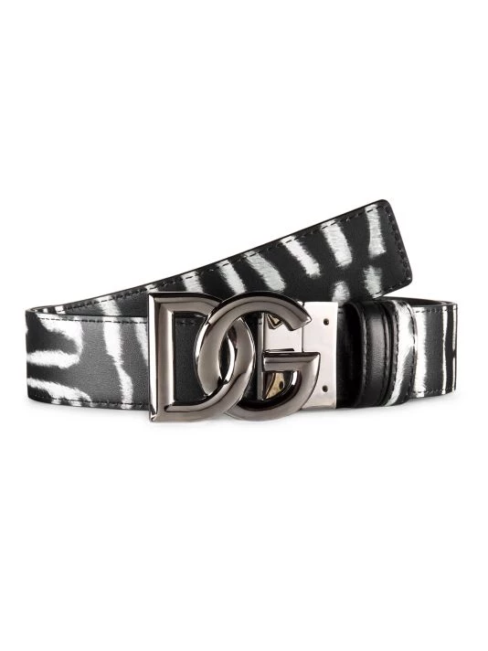 ONLY AT SAKS. This reversible leather belt features a solid and a zebra print side, and is finished with a branded buckle.