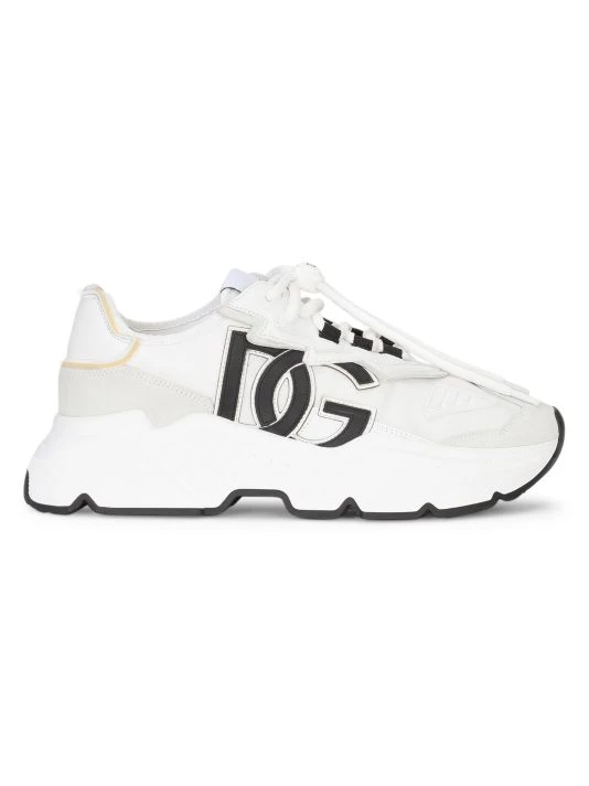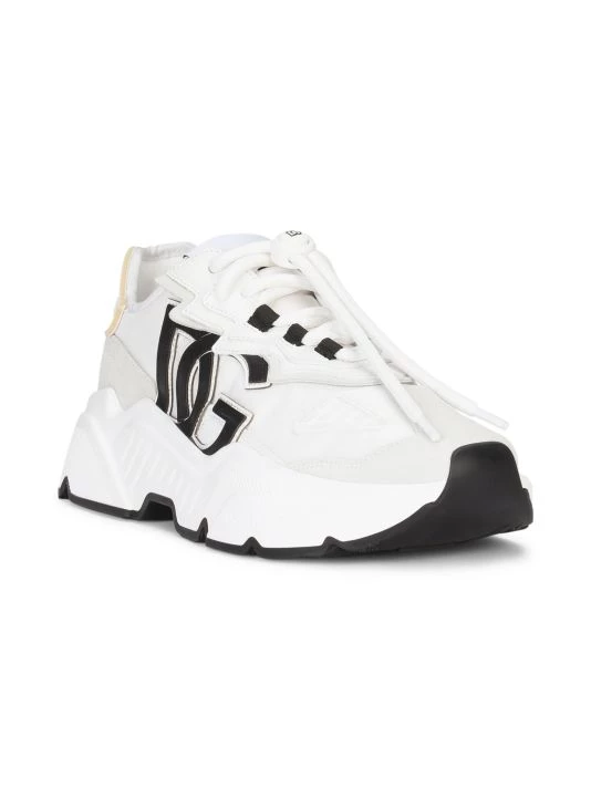 A mixed media design and on-trend chunky silhouette meet in this pair of logo sneakers.
