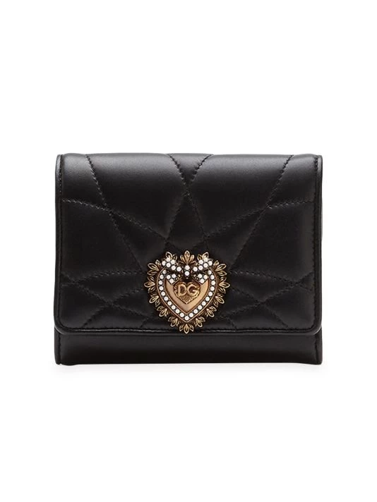 This quilted leather wallet is finished with a crystal-embellished DG logo plaque.