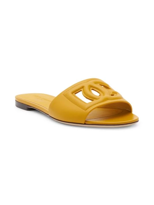 Dolce & Gabbana’s signature interlocking monogram in a cutout design defines these chic leather slides.