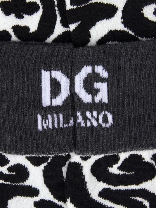 Soft calf socks with a repeated DG logo pattern with contrast trim.