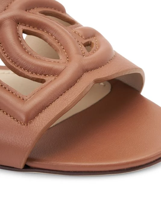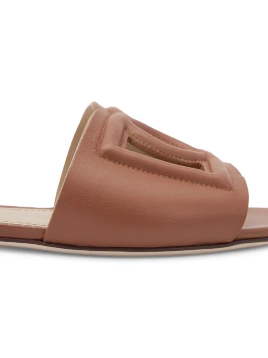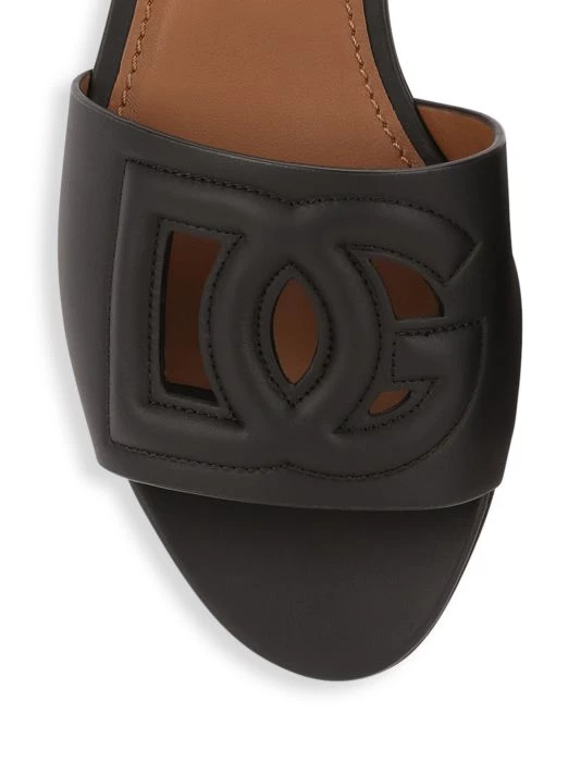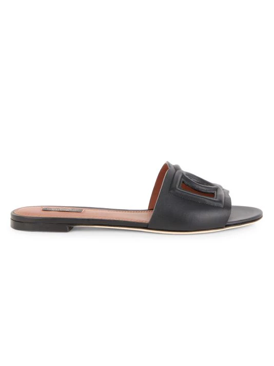 Dolce & Gabbana’s signature interlocking monogram in a cutout design defines these leather slides.