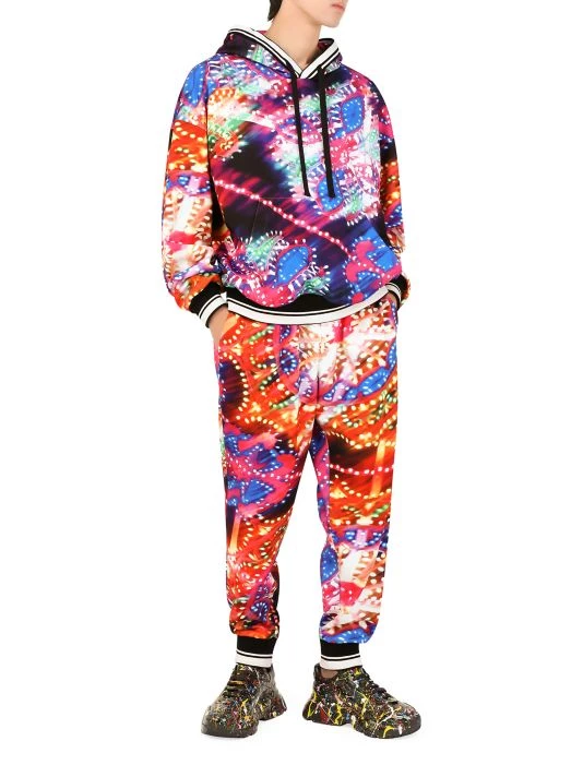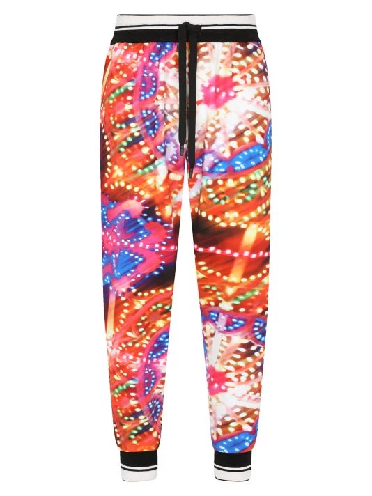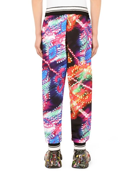 Styled in a vibrant multicolored print, these joggers from Dolce & Gabbana sport a drawstring elastic waistband. These bottoms are finished with striped trim and side slip pockets.