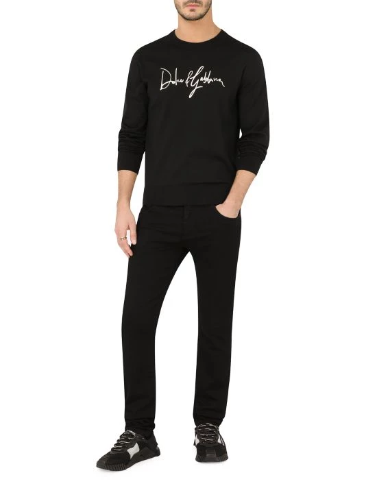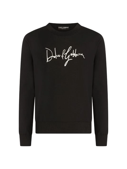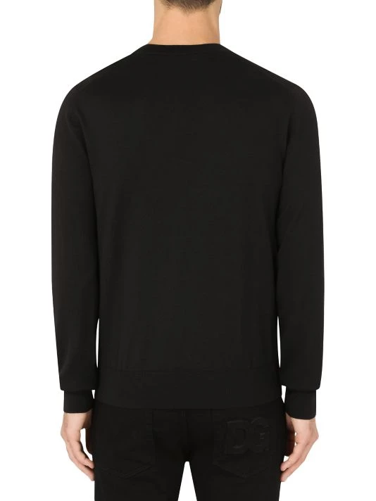 A contrast embroidered logo adorns the chest of Dolce & Gabbana’s wool crewneck sweater.