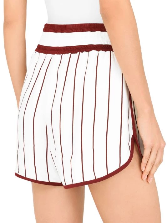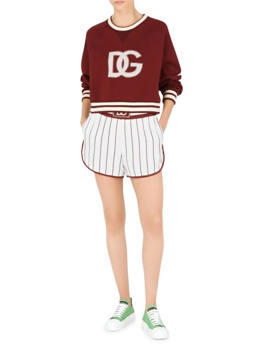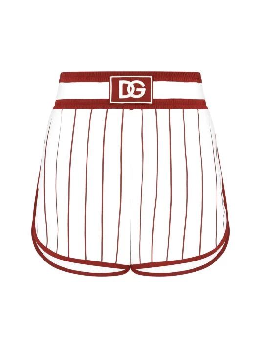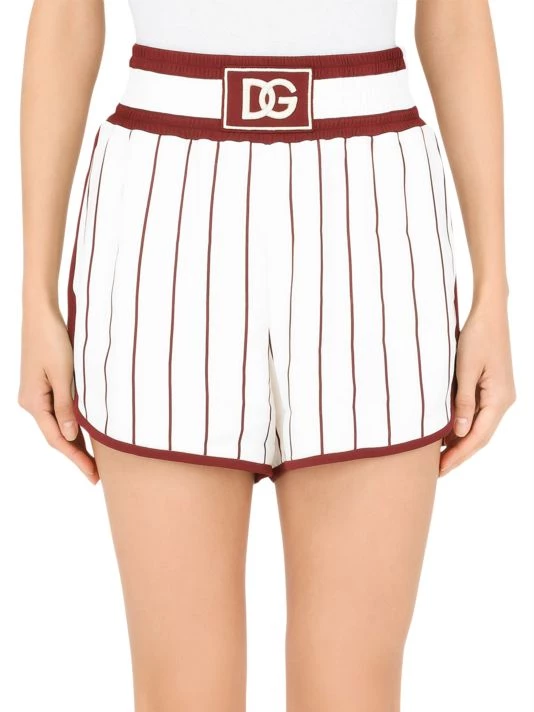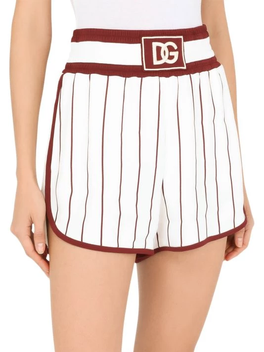 ONLY AT SAKS. Dolce & Gabbana’s pinstriped shorts are complete with a banded elasticized waist. Woven from a lightweight stretch fabrication, the style is complete with a textured logo patch at the front.