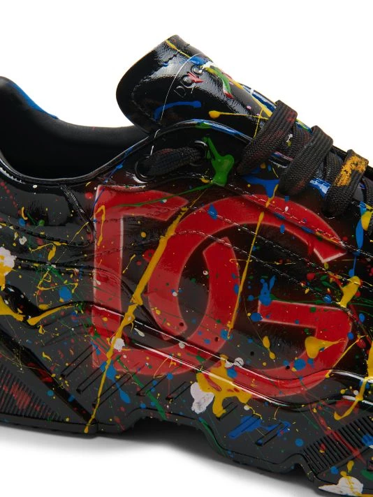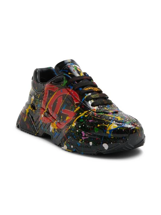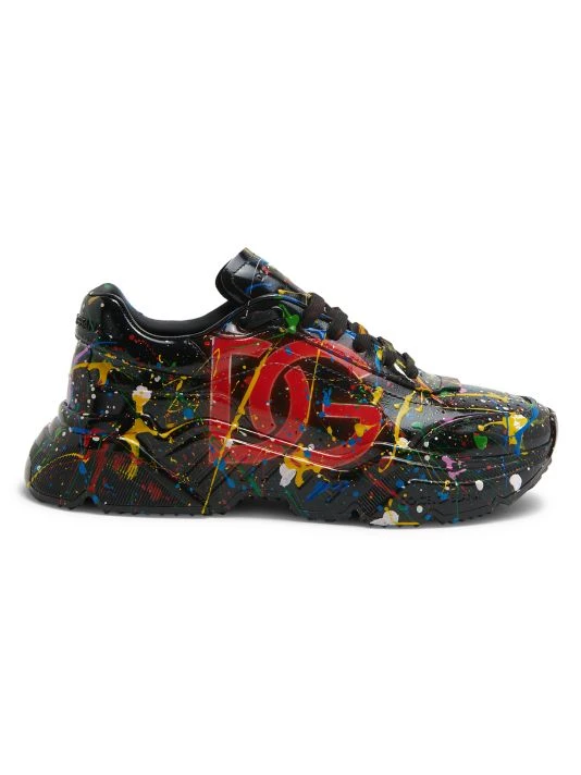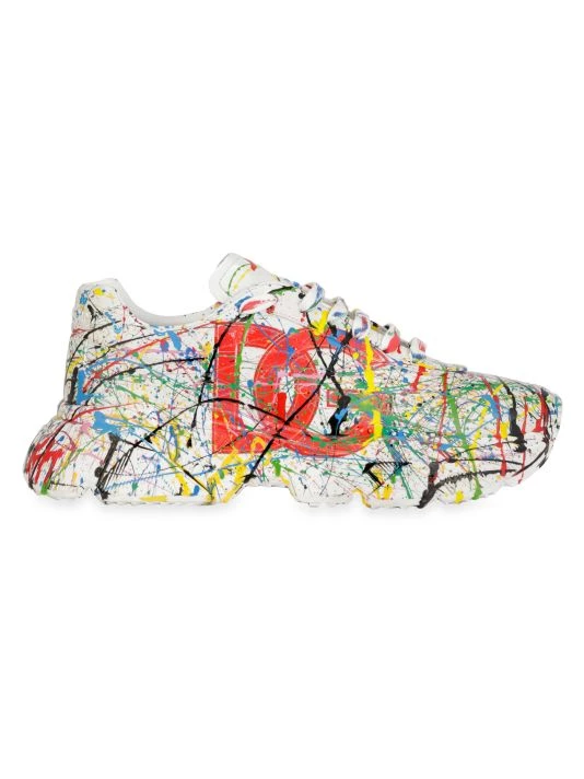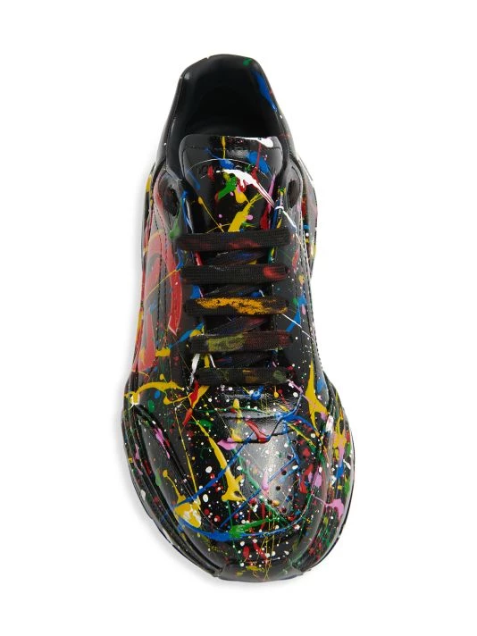 Made of leather, these lace-up sneakers feature the brand logo painted on the side and sport a paint splatter pattern.