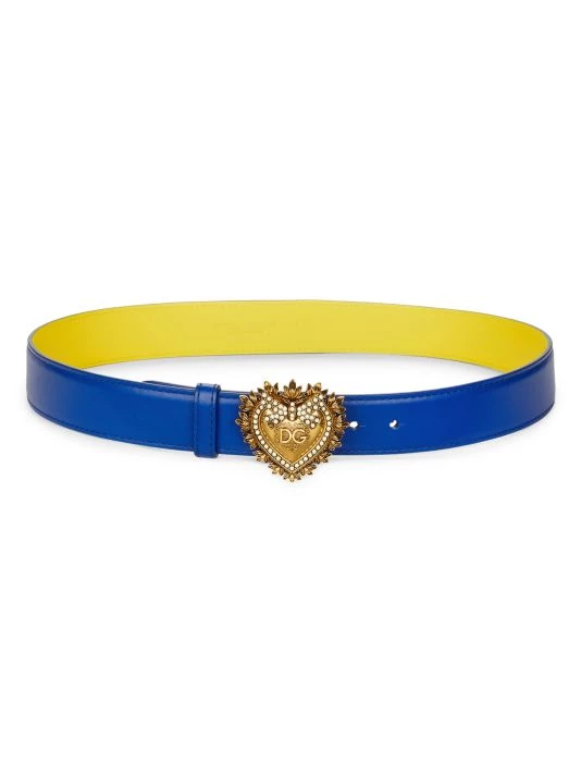 ONLY AT SAKS. A smooth leather belt with high-contrast interior and embellished heart buckle.