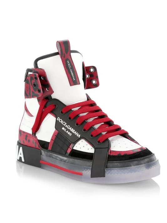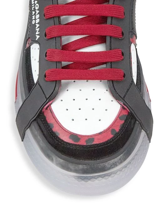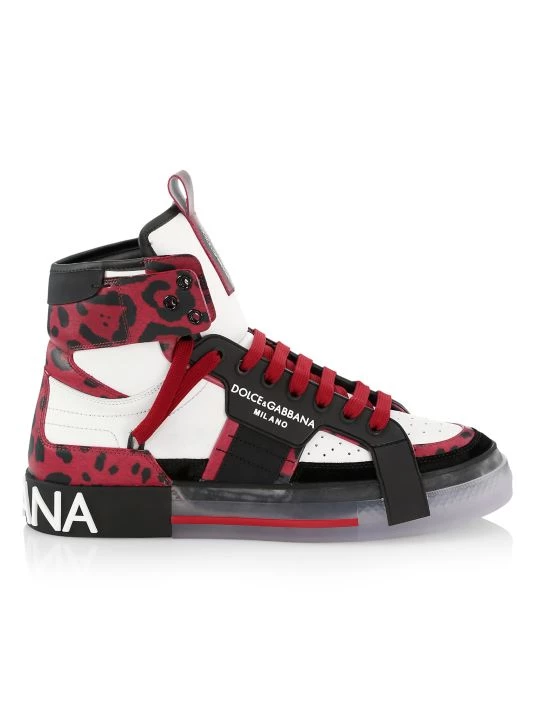 Leopard print and colorblocked panels are bold additions to these high-top sneakers.