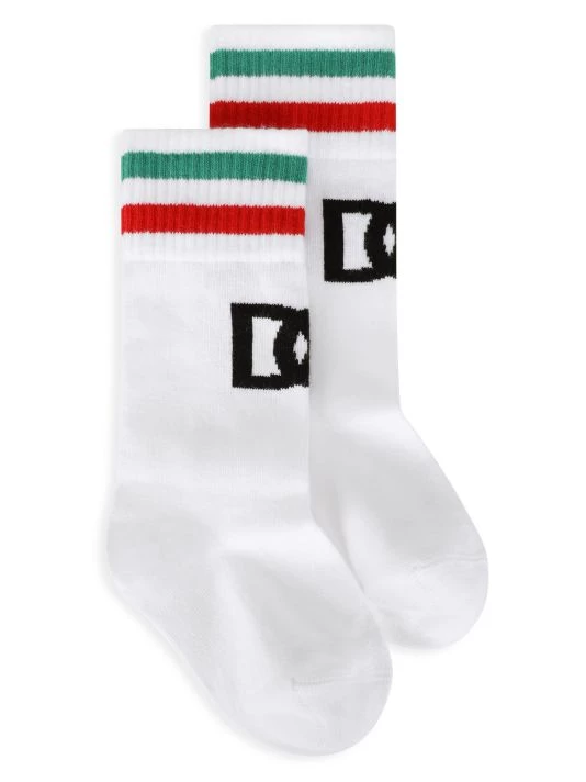 Designed with contrast stripes at the ankle and a graphic logo, these stretch cotton socks feature ribbing for shape.