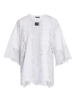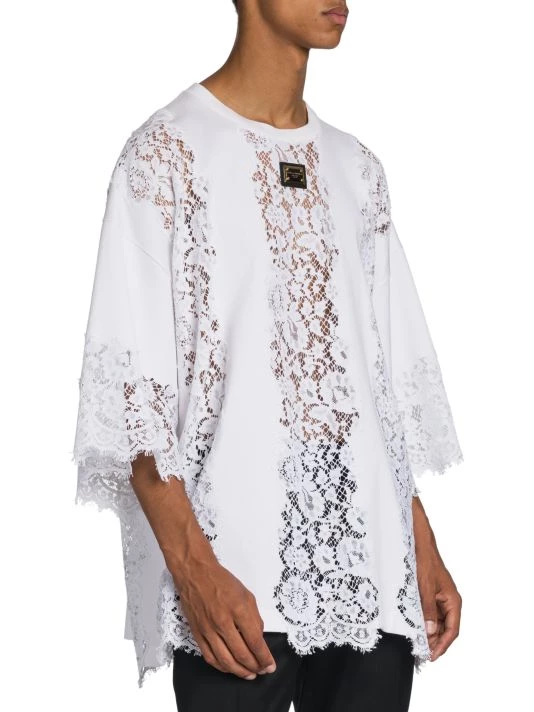 Sheer floral lace panels lend textural dimension to this elevated T-shirt, cut with an oversized fit.