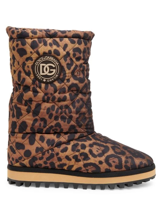 Flaunting bold, contemporary style, these leopard-print City Boots come in quilted waterproof nylon featuring the DG logo on the side and an extra-light micro rubber sole.
