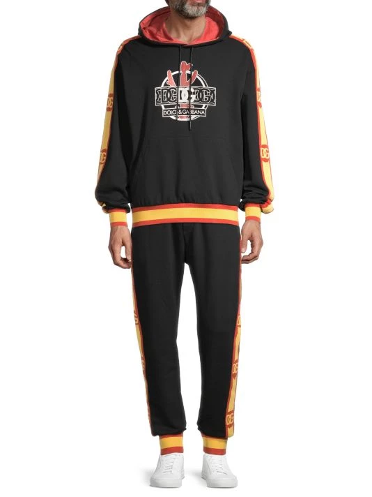 Crafted in Italy of cotton, DOLCE&GABBANA’s jogger pants are designed with sporty side stripes and the house’s DG logo. These pull-on pants are finished with a drawstring waist and ribbed cuffs.