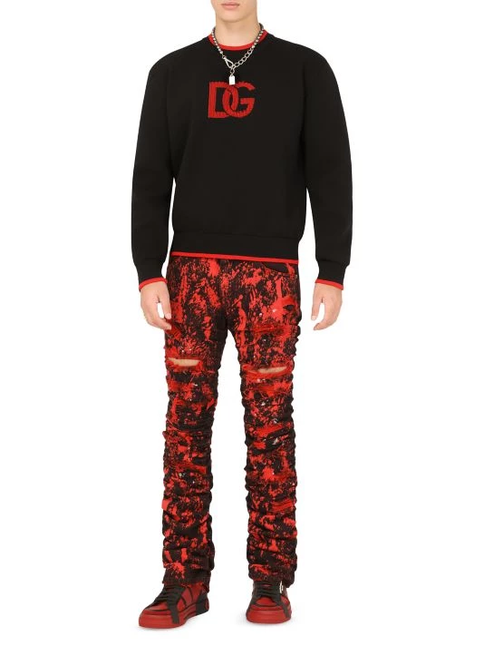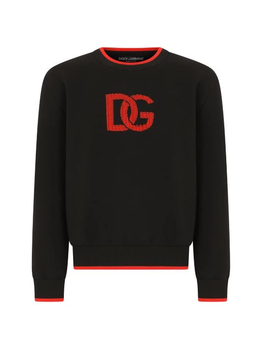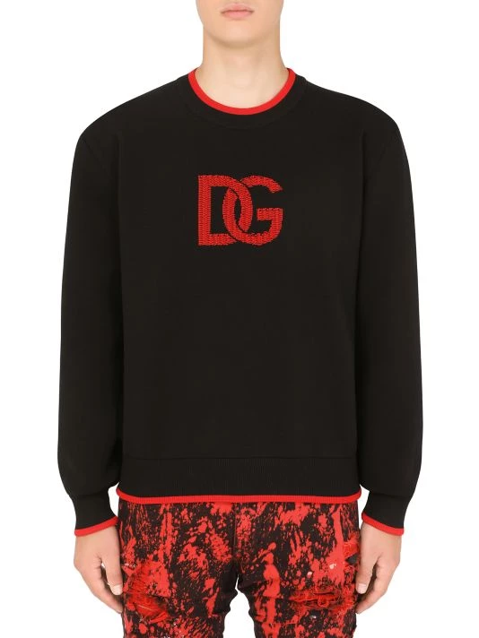 This sweater features a jacquard monogram logo and rib-knit trim with contrast stitching.