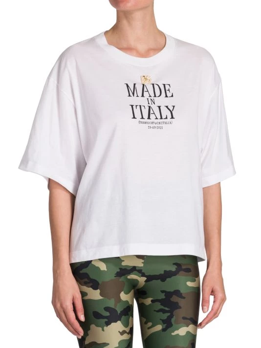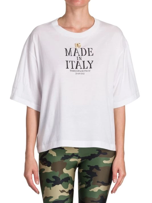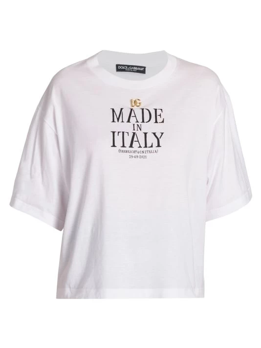This Dolce & Gabbana Made in Italy T-shirt is cut in an oversized silhouette. A large front logo and three-dimensional goldtone charm define this classic style.
