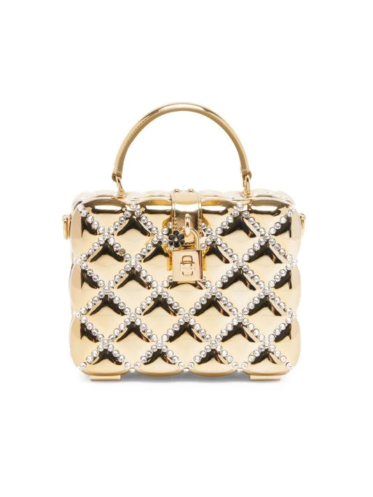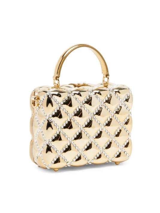 Flaunting a metallic quilted construction this mini box bag is adorned with shimmering crystals.