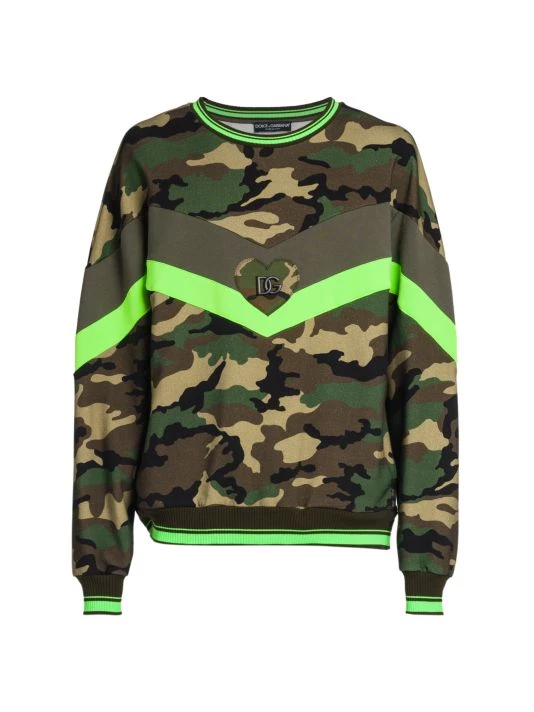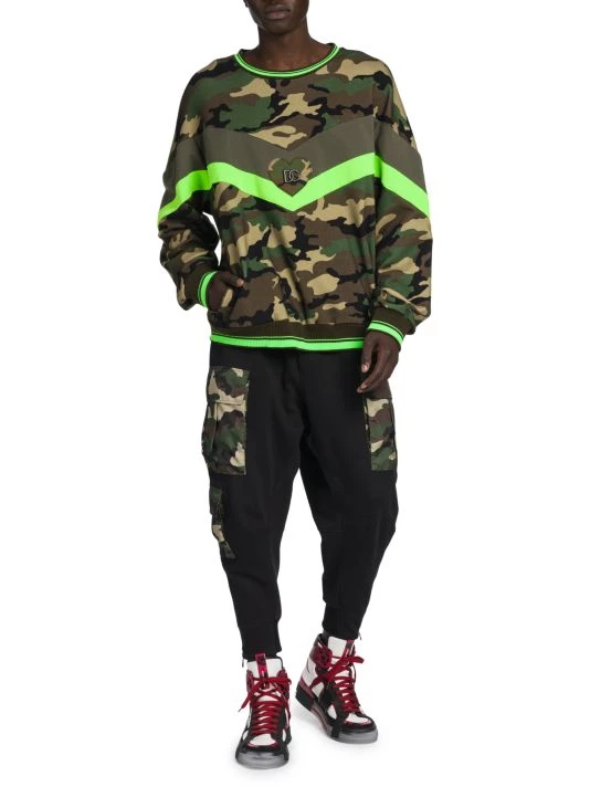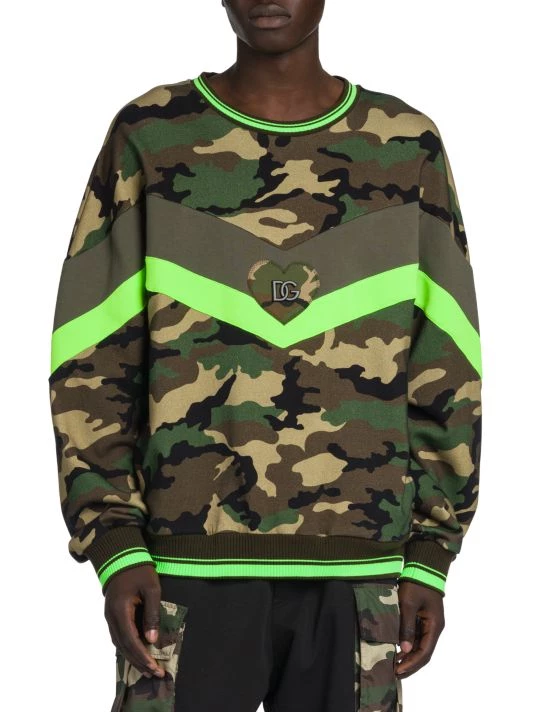 Incorporating a riot of bold patterns, intricate patchwork, and silhouettes with free-spirited energy, legendary house Dolce & Gabbana continues to reinvent fashion with this collection.This crewneck sweatshirt features colorblocked details and an interlocking logo plaque set inside a heart-shaped patch.