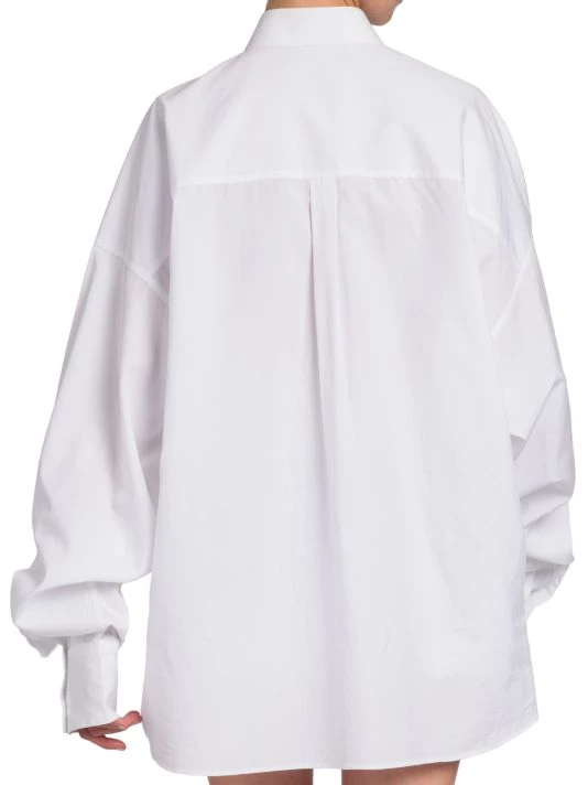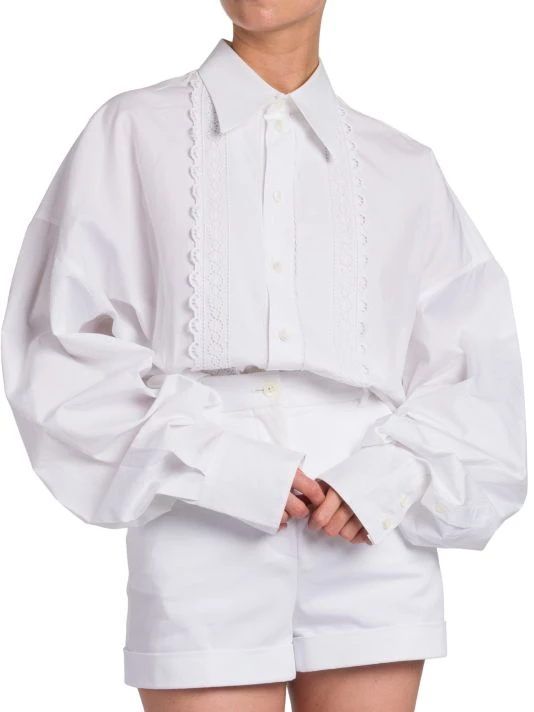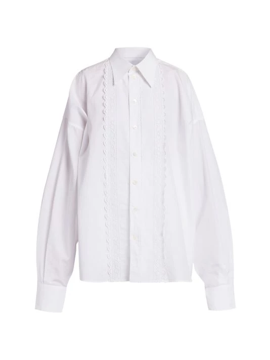 Oversized button down shirt with intricate eyelet detailing at placket.