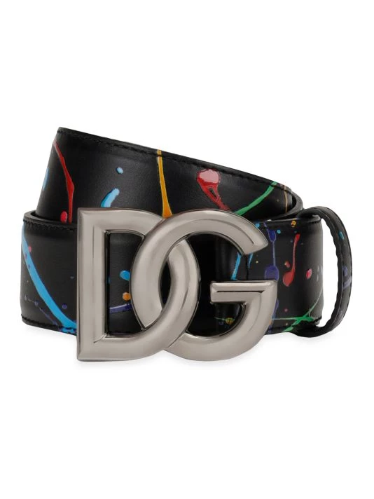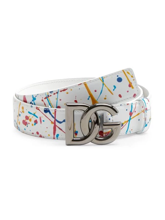 Bright paint splatters lend vibrancy to this classic leather belt, designed with a glossy logo buckle.