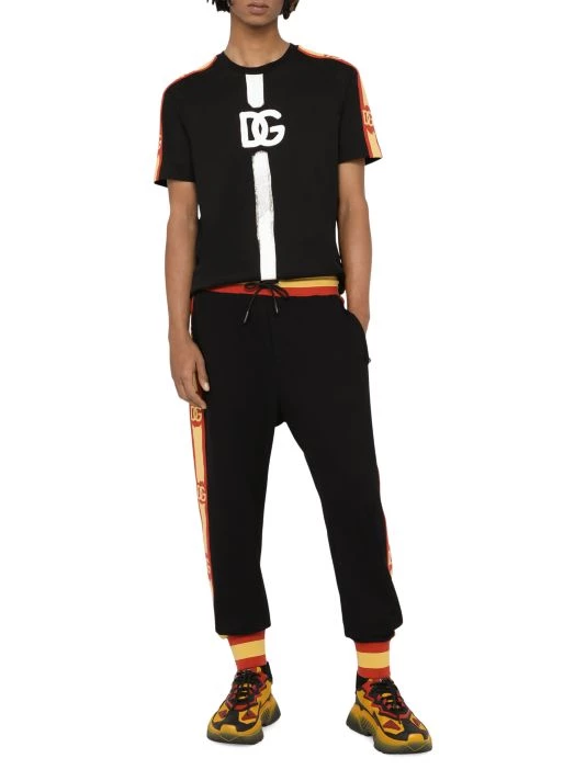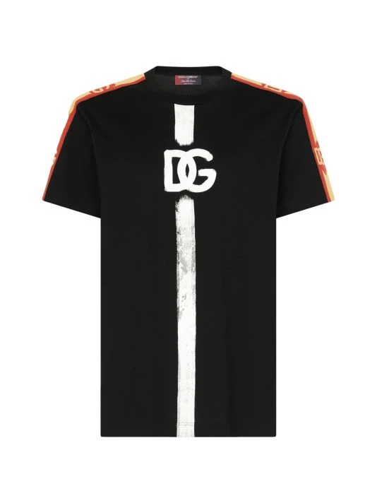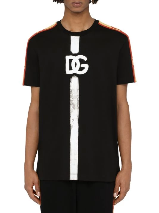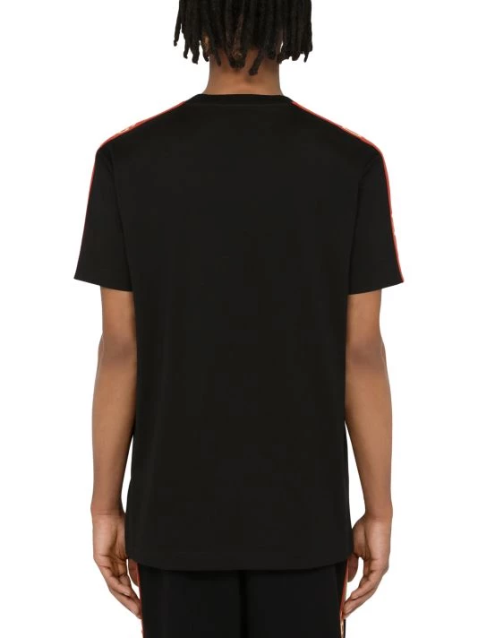 Dolce & Gabbana’s stripe-trim T-shirt features a painted logo at the chest.