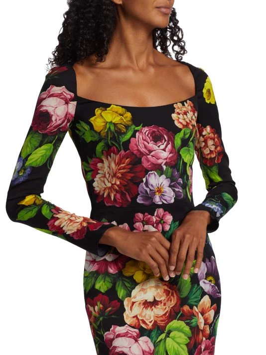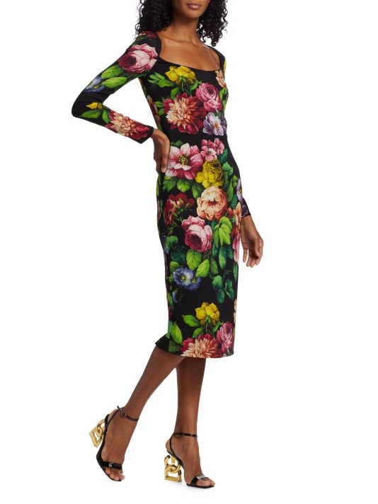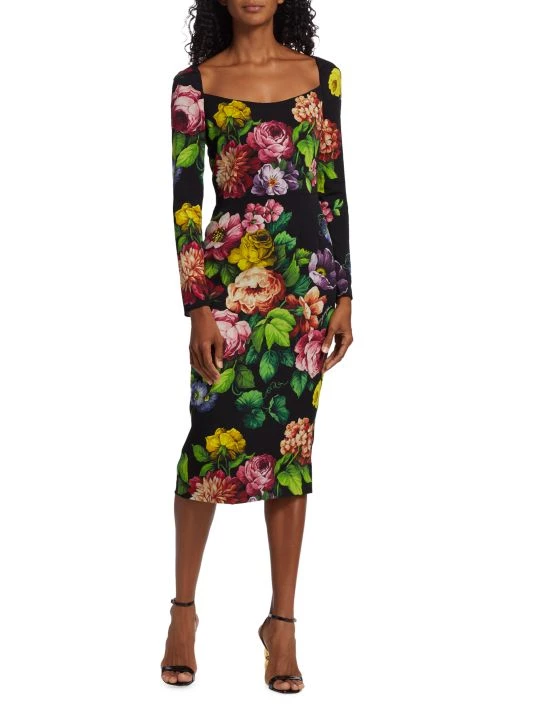 Crafted of a luxe stretch-silk blend, DOLCE&GABBANA’s long-sleeve midi-dress is elevated by a large painterly floral print and body-con silhouette.