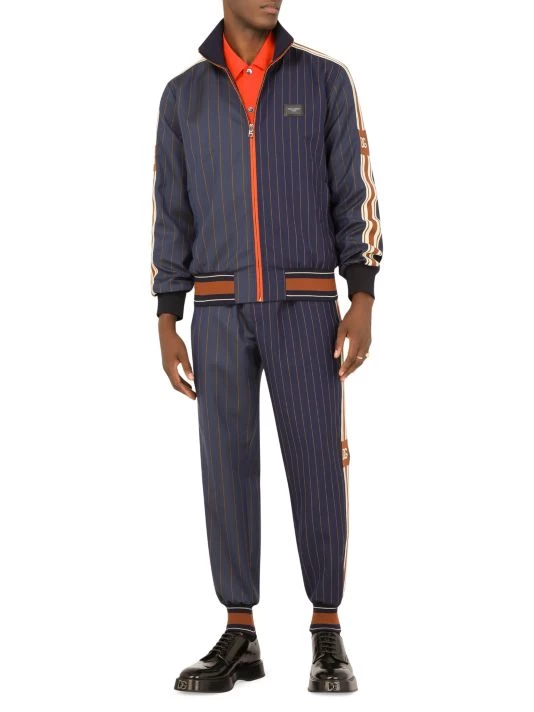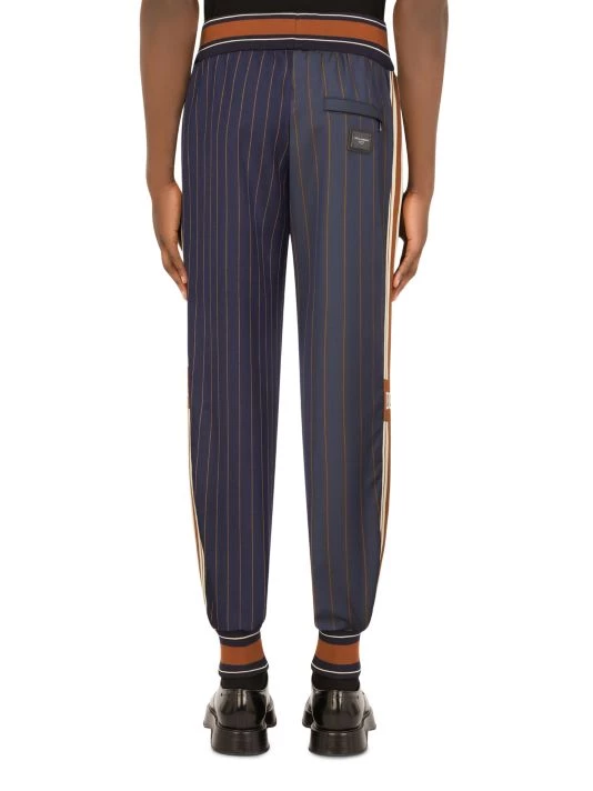 These track pants feature a pin-striped design and sport a drawstring elastic waistband.