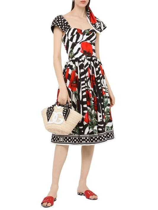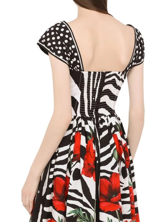 ONLY AT SAKS. DOLCE&GABANNA’s charming fit-and-flare dress features a demure molded bodice and soft pleats at the skirt. Enhanced by a bright poppy and zebra print, this style is trimmed with a polka dot motif.