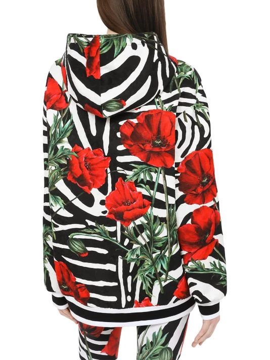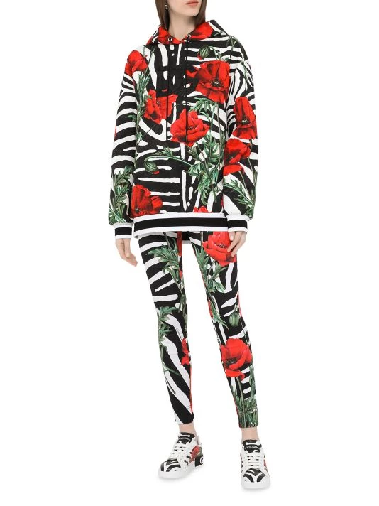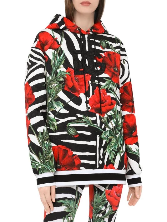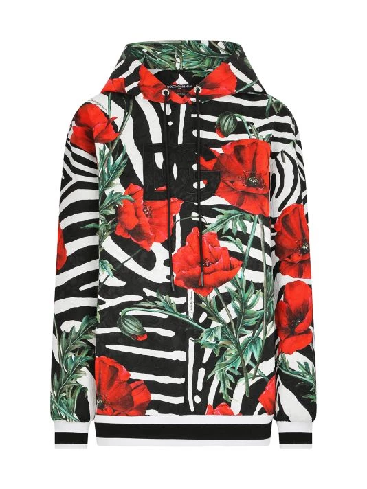 ONLY AT SAKS. This DOLCE&GABANNA hoodie features a drawstring hood and striped trim, adorned with an embroidered logo at the chest. Featuring a bright poppy and zebra print, this style evokes a playful aesthetic.