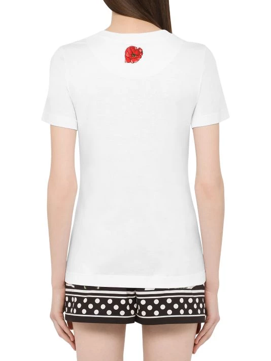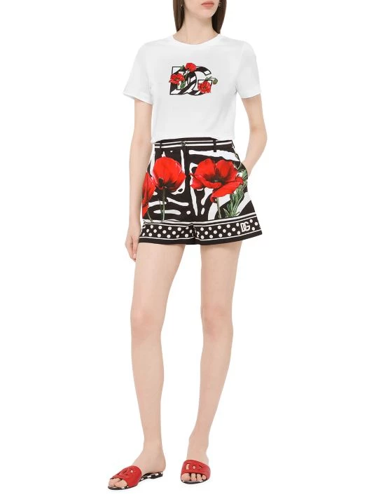 ONLY AT SAKS. This DOLCE&GABANNA T-shirt showcases a classic crewneck and short sleeves. Adorned with an embroidered DG logo, enhanced by a poppy and zebra print design.