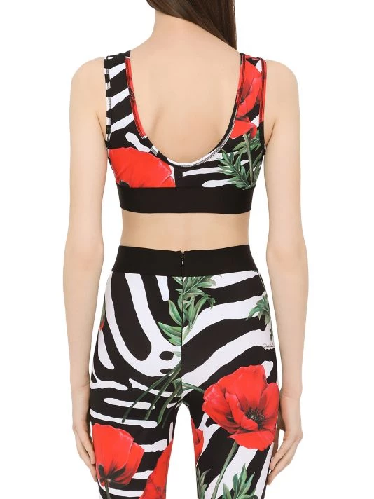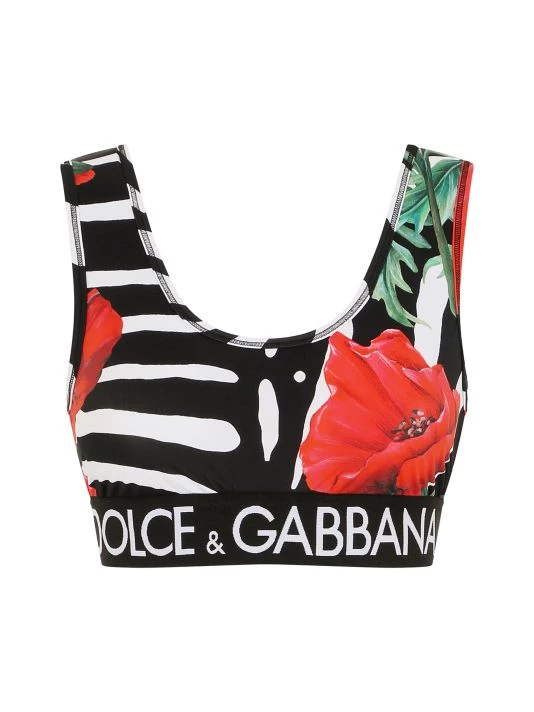 ONLY AT SAKS. Enhanced with an exotic bright poppy and zebra motif, this DOLCE&GABBANA sports bra features a classic scoopneck and a bold logo at the band.