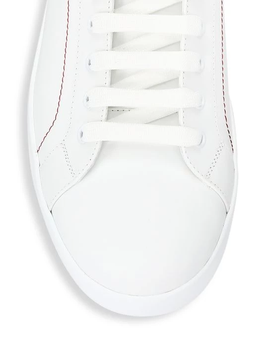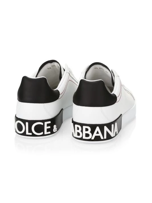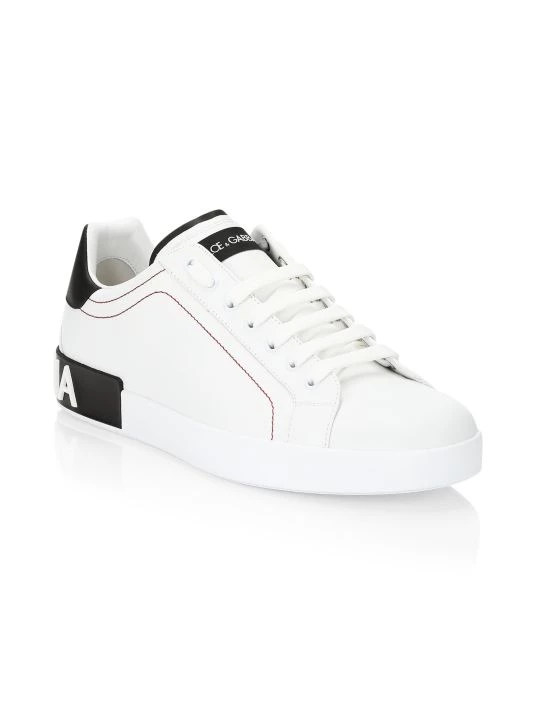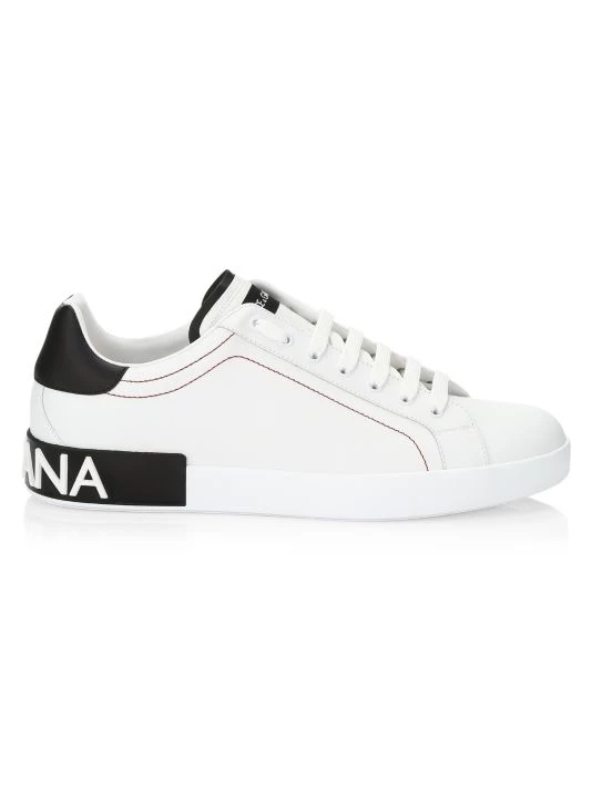 Statement sneakers in smooth leather with embossed heel and brand lettering.