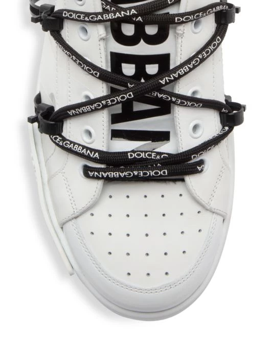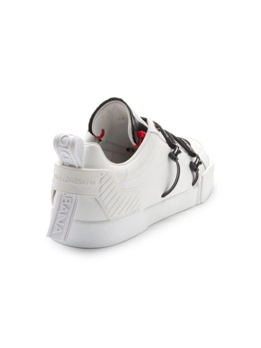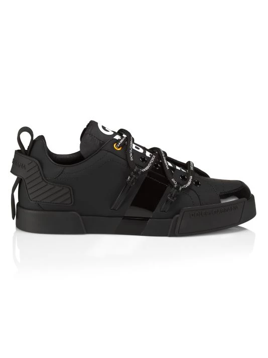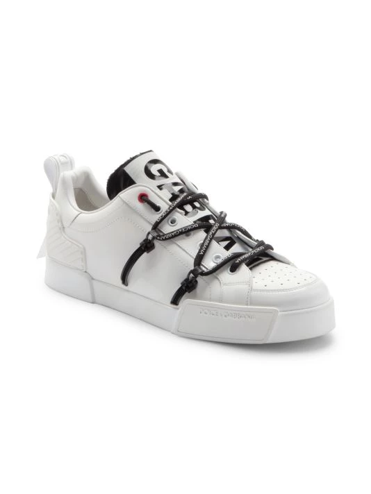 Bold logo sneakers secured with plastic tuggers at the laces for a utilitarian finish.