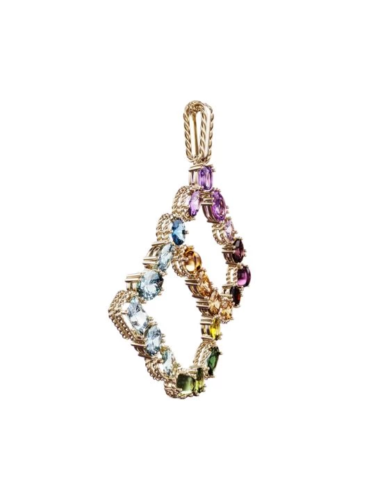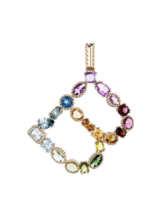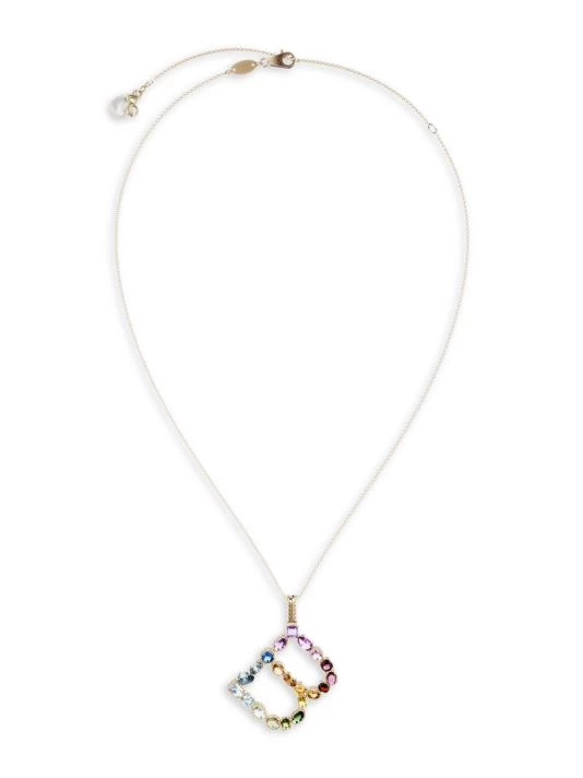 From the Alphabet Collection. Mixed gemstones dot this letter charm, which can be worn alone or paired with other letters to spell words and messages, set along a cable chain.