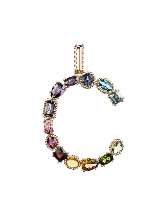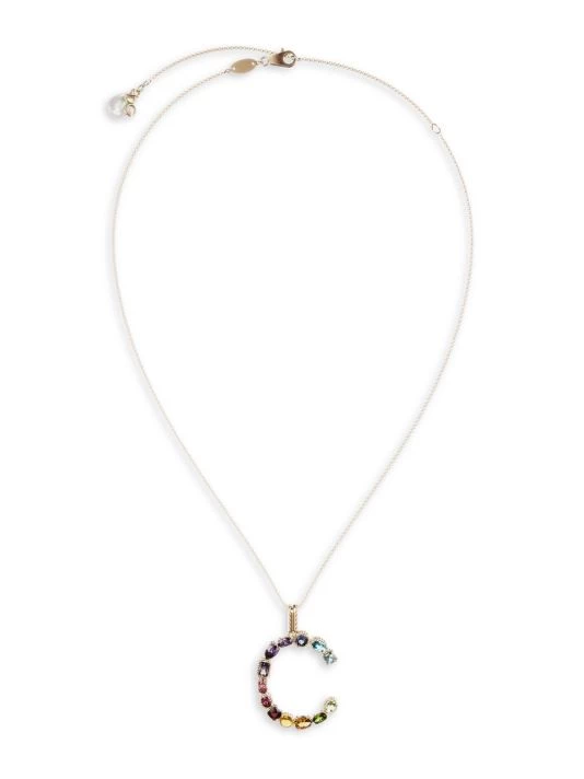 From the Alphabet Collection. Mixed gemstones dot this letter charm, which can be worn alone or paired with other letters to spell words and messages, set along a cable chain.