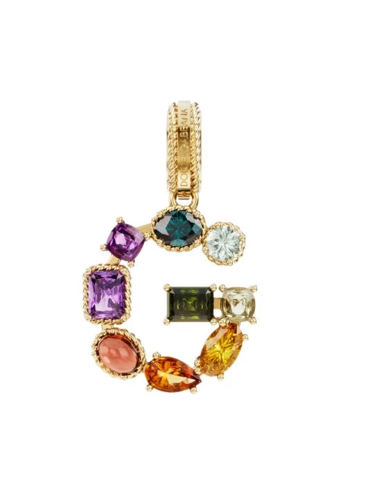 From the Alphabet Collection. Crafted of 18K yellow gold, this exquisite pendant is embellished with multicolored gemstones in various cuts, sizes and shapes.