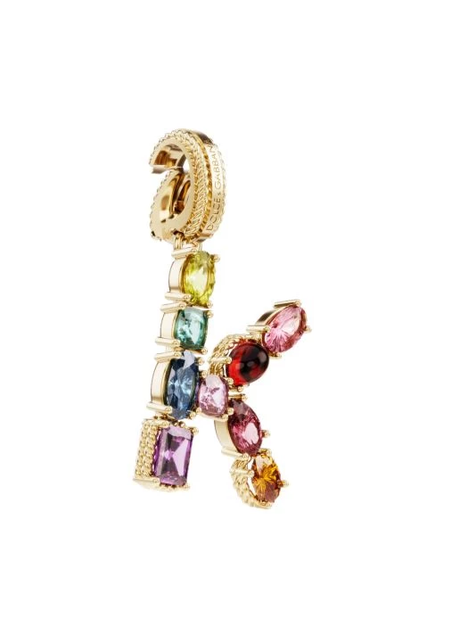 From the Alphabet Collection. Crafted of 18K yellow gold, this exquisite pendant is embellished with multicolored gemstones in various cuts, sizes and shapes.