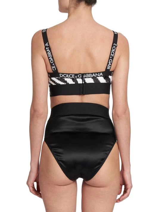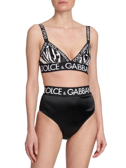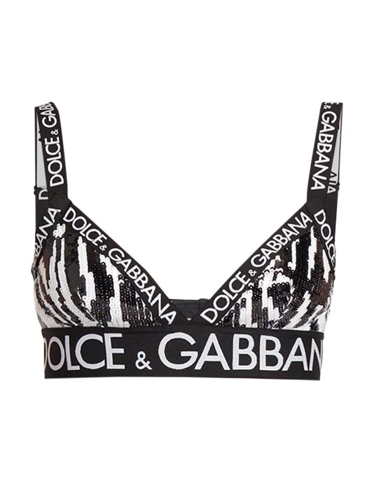 DOLCE&GABBANA’s triangle bra is embellished with eye-catching sequins. Made in Italy, this chic style is detailed with the label’s signature logo lettering on the straps and underband.