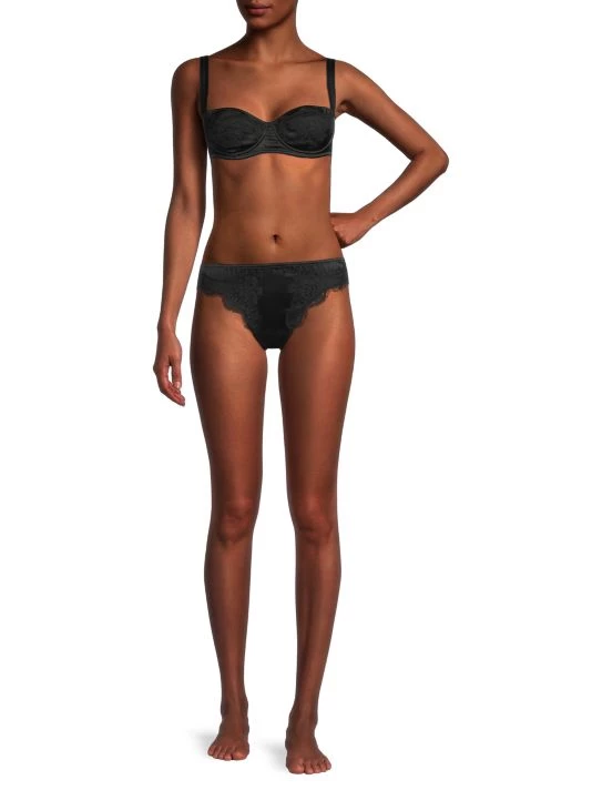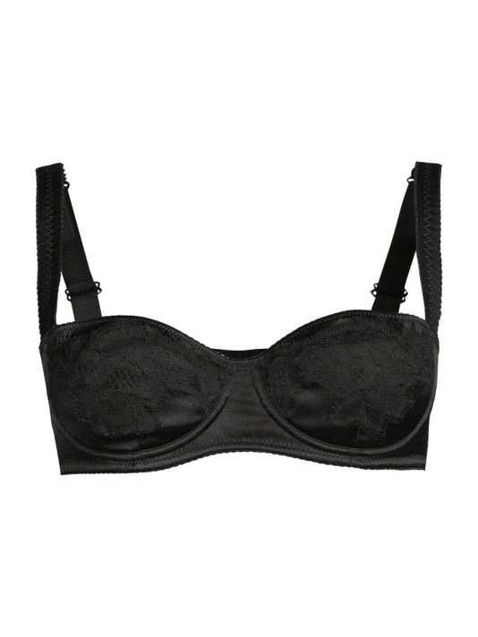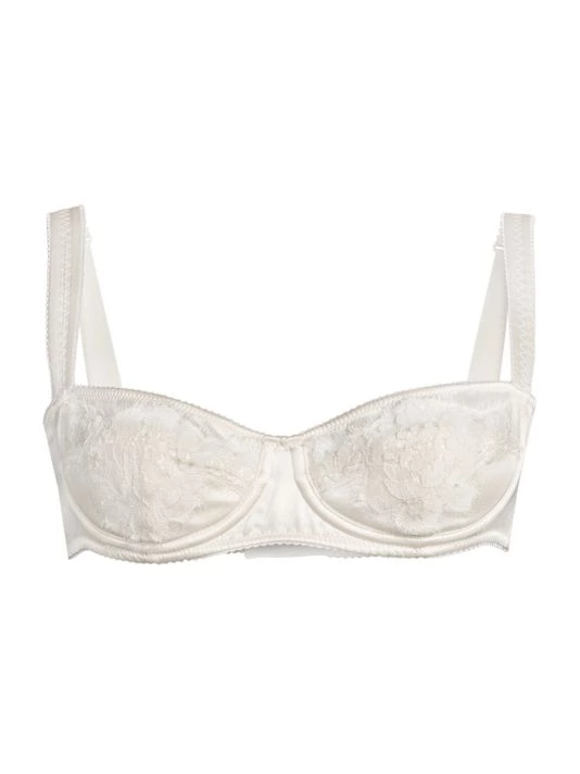 Silk-blend balconette back with intricate floral lace embellishments at cups.
